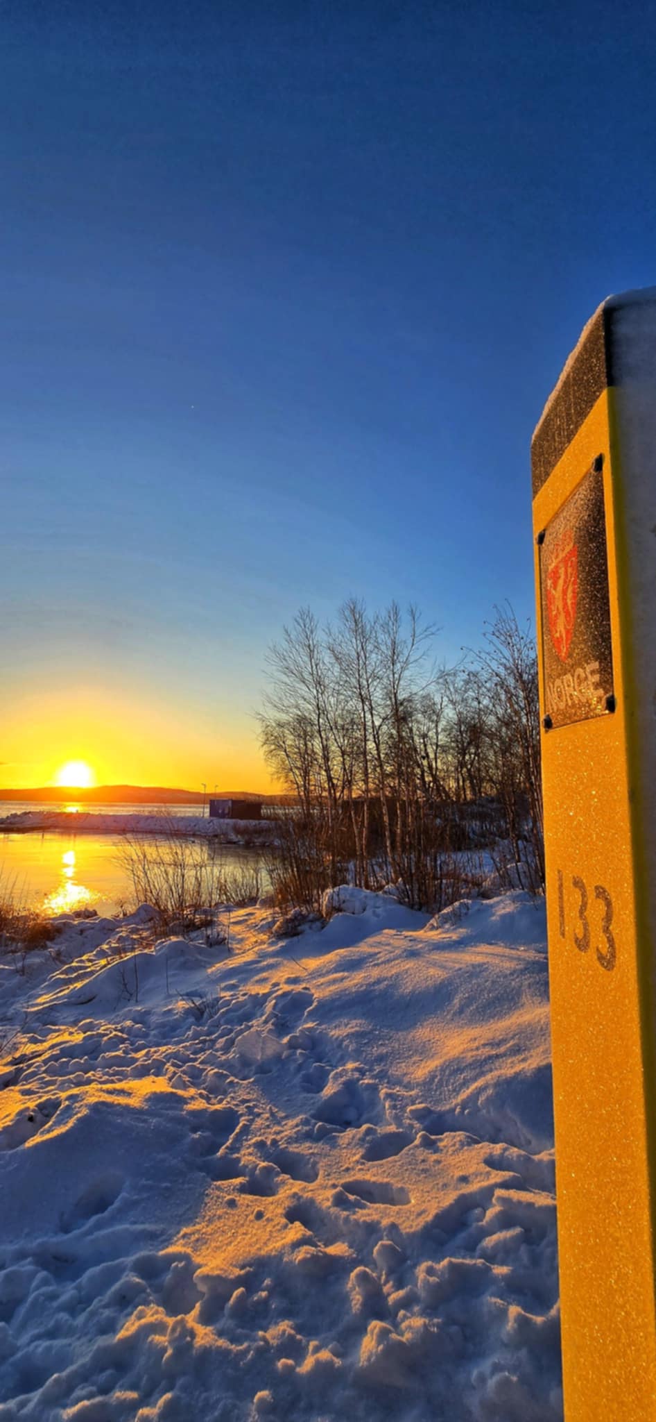 I krysset ved kapellet, følger du veien ned til høyre, mot Utnes. Ved turmålet befinner du deg ved det norske grensemerket 133, og grensen mot Russland går omtrent midt i elva/bukta. Flott utsikt!